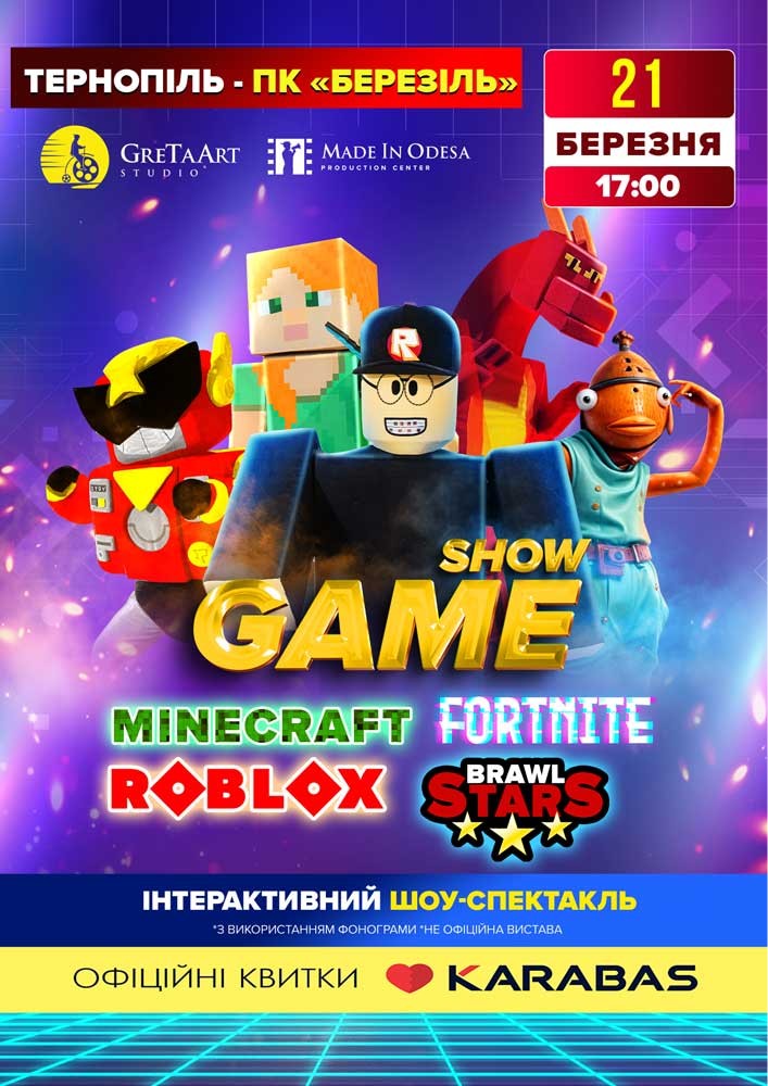 Доставка квитків на Minecraft запрошує на «GAME SHOW» по місту Тернопіль та Новою поштою по Україні післяплатою або передоплатою.