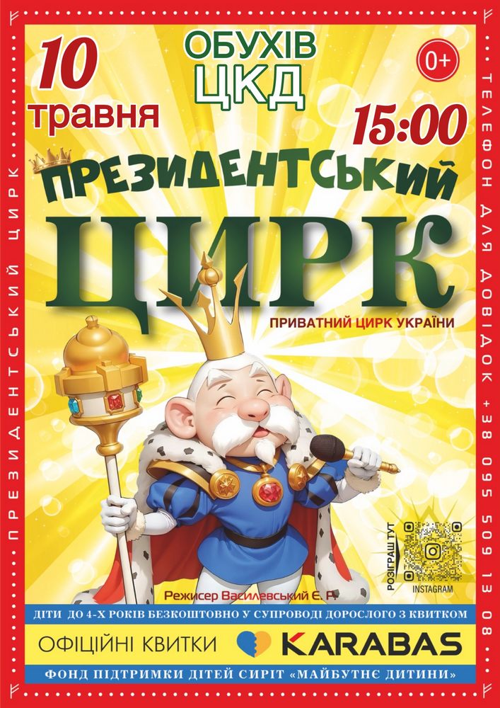 «Президентський Цирк» відбудеться 10 травня 2025 о 15:00 в Обухів, Районний Центр Культури та Дозвілля за адресою вул. Київська, 117.