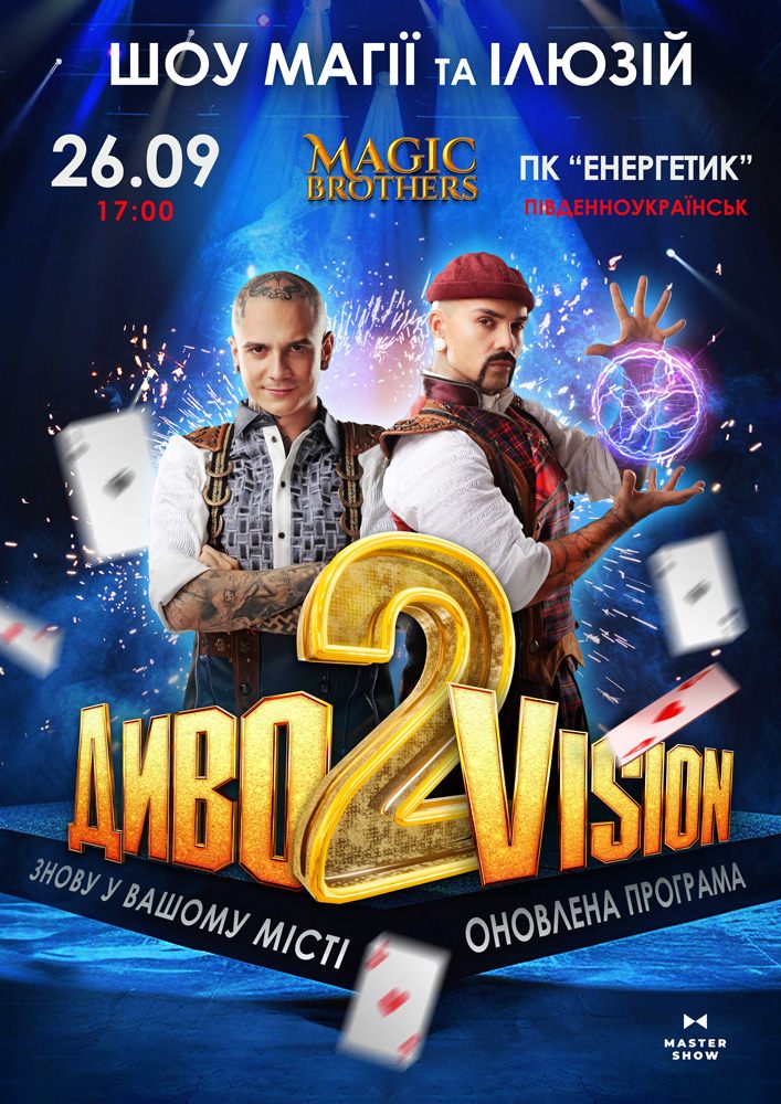 Ілюзіон шоу від Magic Brothers «ДИВОVISION 2» відбудеться 26 вересня 2025 о 17:00 в Южноукраїнськ, ДК Енергетик за адресою пр. Леніна, 10.